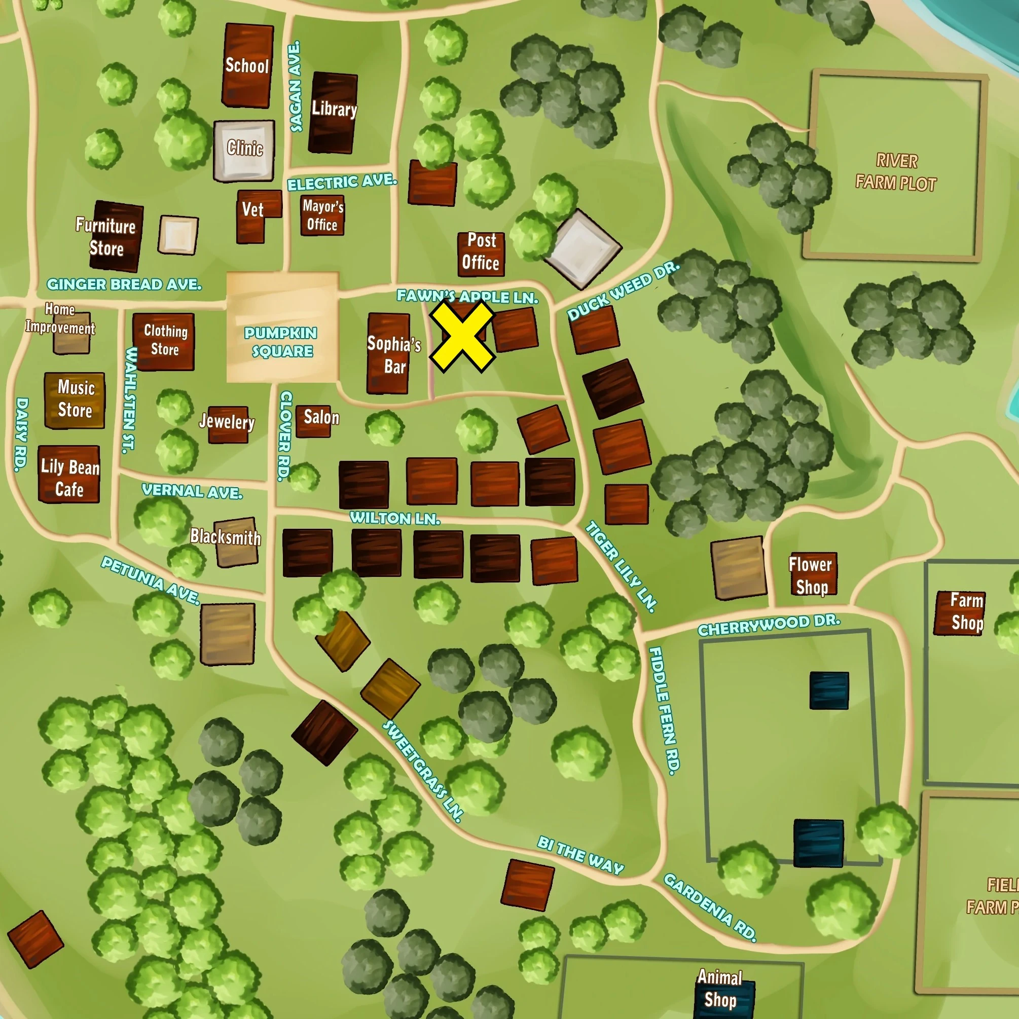 Zoeys's house is marked with a yellow "X" on the map below.